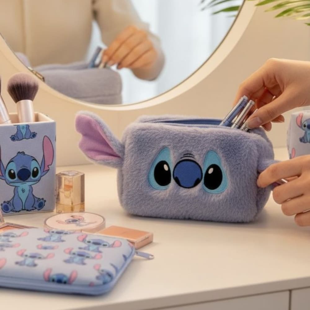Con su piel sintética mullida y su adorable diseño de Stitch, este neceser es tanto un accesorio como un peluche. A los niños les encanta tocarlo, y rápidamente se convierte en un imprescindible de su rutina