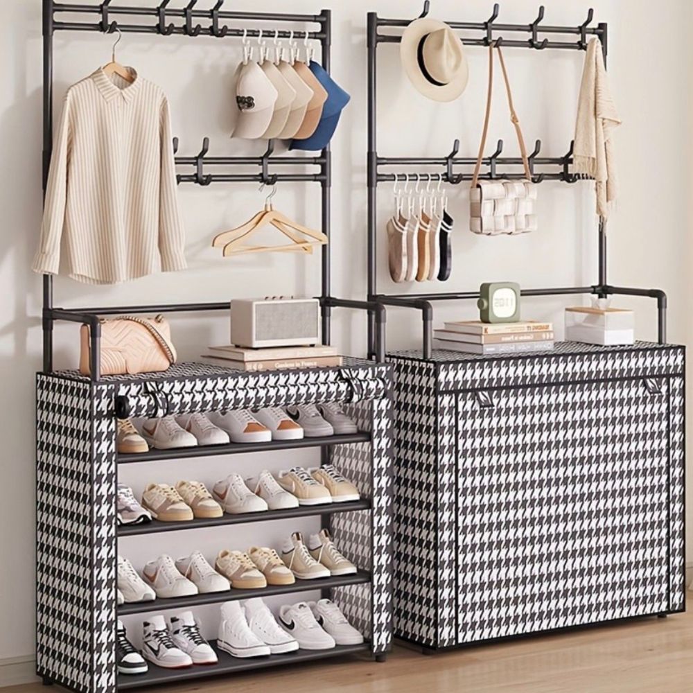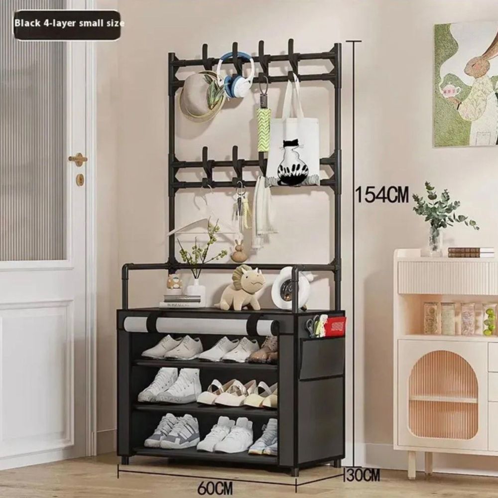 Mueble Organizador Multifuncional de 4 Niveles – Color Negro Organiza con estilo y funcionalidad tu hogar con este práctico y moderno organizador multifuncional. Ideal para entradas, pasillos, dormitorios o cualquier espacio donde necesites orden y diseño.